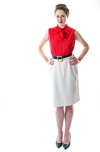 Tie them up in knots with theses cherry red dots! Vintage women's sleeveless dress with matching neck tie.